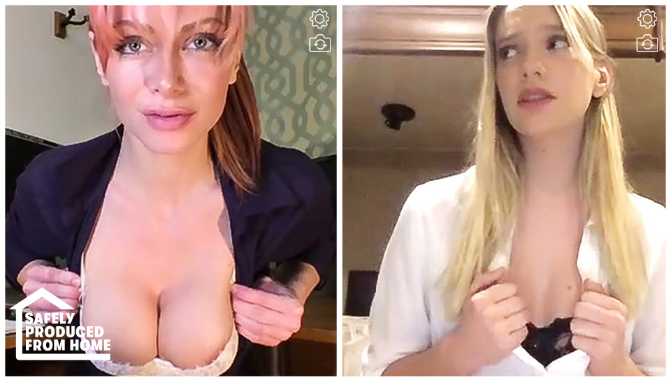 Serene Siren and her secretary, Kenna James, have been having a secret affair in their office for months. Siren is the CEO of a powerful company and a successful independent lesbian. Kenna is shy, conservative, and leading a double life with an unknowing husband at home. But now their company has shifted to virtual working and this has left the lovers in a real bind. Serene expects to still have her needs met, even if they cannot physically touch, whereas Kenna is torn between extreme horniness for her boss and her nervousness about getting caught! This all boils over one day as they connect for their daily conference call. During the course of this conversation, Kenna tries to stay professional while Serene keeps dropping innuendos and trying to loosen her lover up. Kenna tries her best to resist but can't help showing a little skin.Finally, it reaches a breaking point when Kenna hears her husband in the other room. She excuses herself, calling back soon after. She apologizes profusely, saying that she sent her husband out to try and find some toilet paper so they could finally be alone. Pleased that Kenna seems more relaxed now, Serene asks her to do a little striptease for her and becomes more and more excited as she watches Kenna, even starting to touch herself. Suddenly, Kenna hears a knock on the door and, panicking, she mutes the video and leaves the screen. Serene looks very annoyed and tries to say something...but hangs up once she realizes she's been muted.Kenna calls back one final time, wearing a robe. Serene is angry and doesn't appreciate being kept waiting, especially during office hours. She curtly reminds Kenna that even though she is at home, she is still at work. Kenna apologizes and tries to get back into sexy mode with her boss, but Serene pouts. Kenna, smiling because she knows her boss is a little jealous, reassures Serene that her husband just forgot his wallet and will be gone for hours. She playfully removes her robe to show her naked body and this snaps Serene back into a good mood. Kenna submissively asks what her boss would like her to do today. Serene licks her lips and grins, ready to put her secretary through her paces.After all, this lady boss knows that working remotely is no excuse for slacking off!